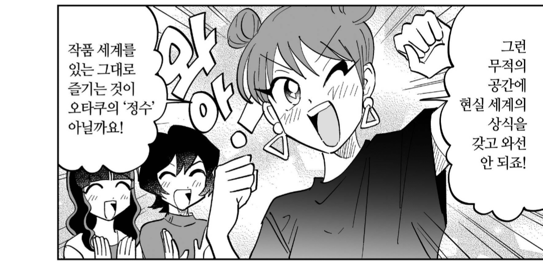 잘하고 못하고 옳고 그르고를 떠나서 어쨌든 내가 좋아하는 것을 최선을 다해 좋아하자, 좋아하는 마음을 동인지로 표현한다는 것은 굉장히 멋진 일이다! 는 정말 중요한 이야기지만, 동인계는 대체로 사람들의 갈등이나 질투 등... 마이너스 감정이 강하니까요. 본편은 그런 의미에서 꽤 긍정적으로 풀어낸 편이었는데, 동인판은 왜 동인판이지? 라는 의문을 풀어주는 작품이었네요.