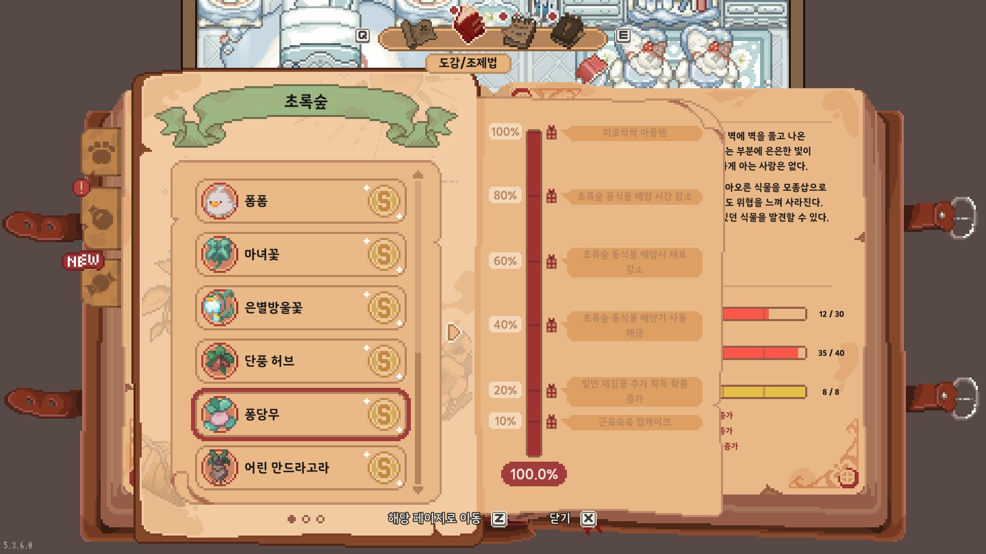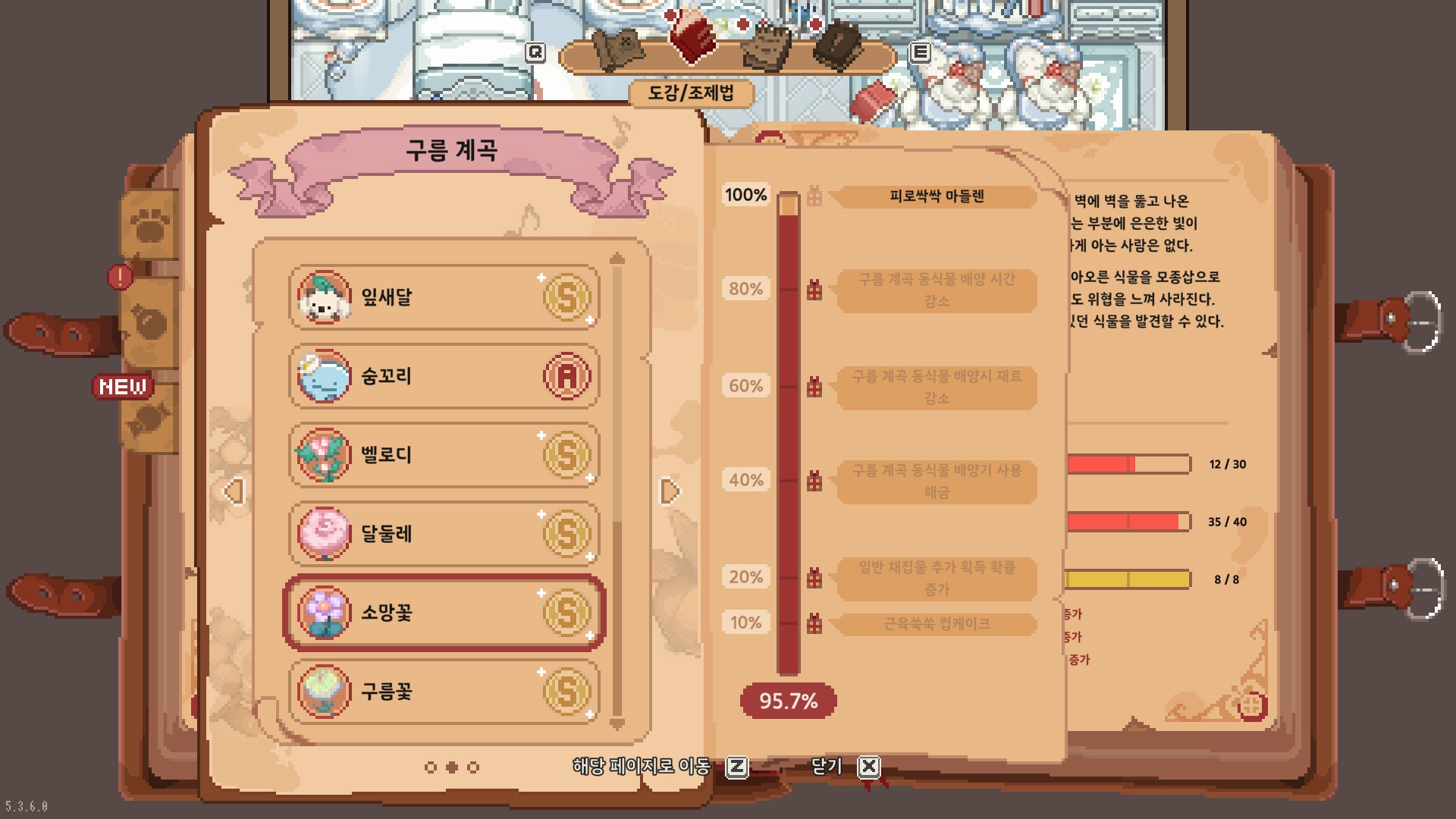 열심히 도감작 했으니 기념 스샷도~! 2지역에서는 달둘레를, 3지역에서는 유성꽃을 좋아해요 ㅇ///ㅇ💖